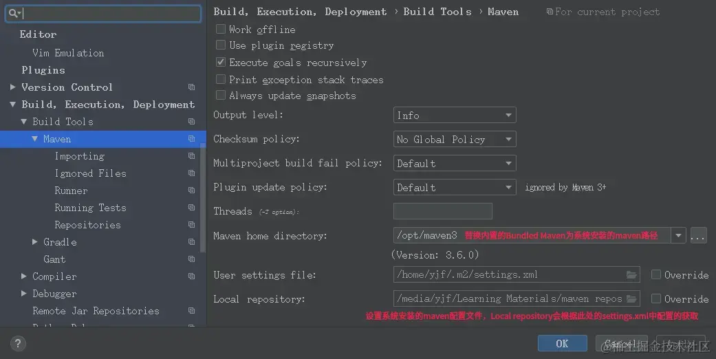 Ctrl+Alt+S后在配置界面中选择Build,Execution,Deployment | Build Tools | Maven进行配置。