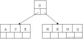 (2) 插入H,n>4,中间元素G字母向上分裂到新的节点