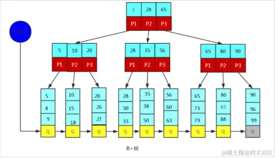 MySQL中的 B+Tree 索引结构示意图:
