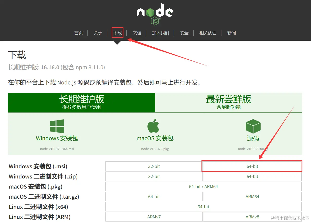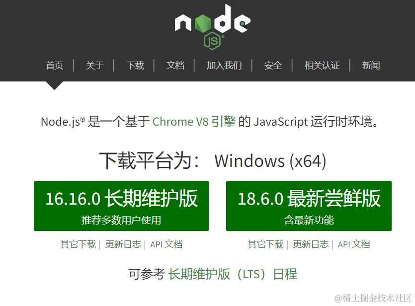 - LTS版本:(Long-term support, 长期支持)相对稳定一些,推荐线上环境使用该版本,建议选择此版本