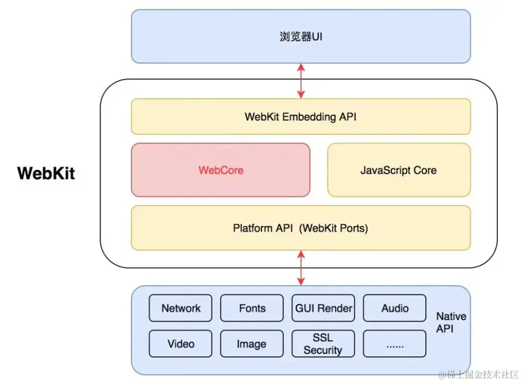 - 在Chrome浏览器中,还需要解析、渲染HTML、CSS等相关渲染引擎,另外还需要提供支持浏览器操作的API、浏览器自己的事件循环等
