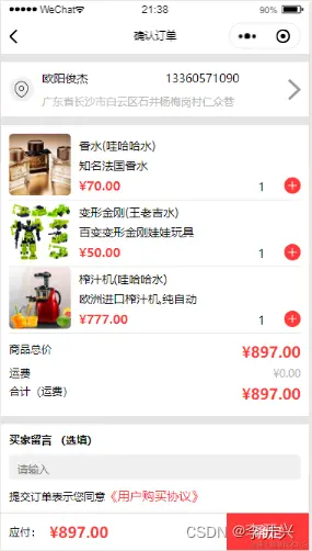 (7)功能测试。测试各个功能是否能正常运行,且能适应各种用户操作,如:下单时,到达付款页后用户未付款,此时应将订单变为待付款订单。购买商品时,用户将购买数量设为0,这个是不被允许的。用户余额不足时,付款应为失败,并提示用户“余额不足导致付款失败”