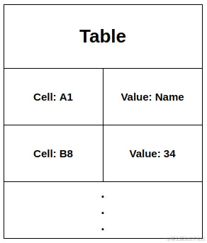 在下图中,将单元格位置和对应的单元格值以键值对的形式进行了存储。