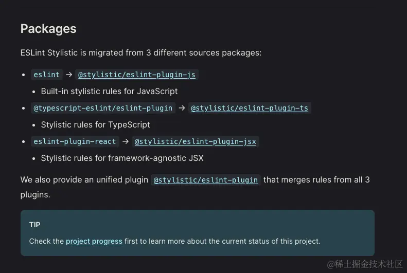 由于维护成本高昂,ESLint 和 typescript-eslint 团队决定放弃核心中与格式化/风格相关的规则,因此启动了该项目。此 repo 移植了这些规则,并将它们作为独立的软件包发布,并将由社区进行维护。