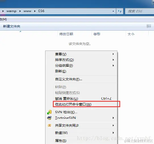 按住shift键,在文件夹中点击鼠标右键,选择在此处打开命令窗口。