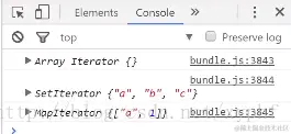下面我们举个例子,先声明三个常量,分别是一个数组和一个set和一个map,分别给它们初始化一些数据,之后我们用三个常量保存一下 Iterator 接口,并且执行一下这个函数
