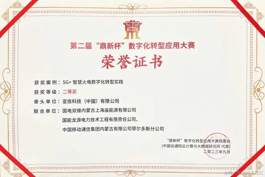 在“行业数字化融合”赛道,亚信科技联合国电电力双维、国能龙源、中国移动内蒙古有限公司打造的“5G+智慧火电数字化转型实践”项目荣获二等奖。