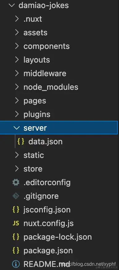 在目录下创建一个server文件夹,将data.json文件放在里面