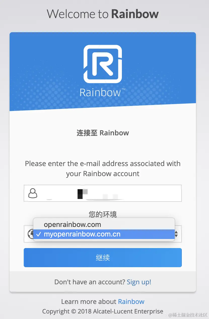 2、登录 在中国境内建议选择 myopenrainbow.com.cn