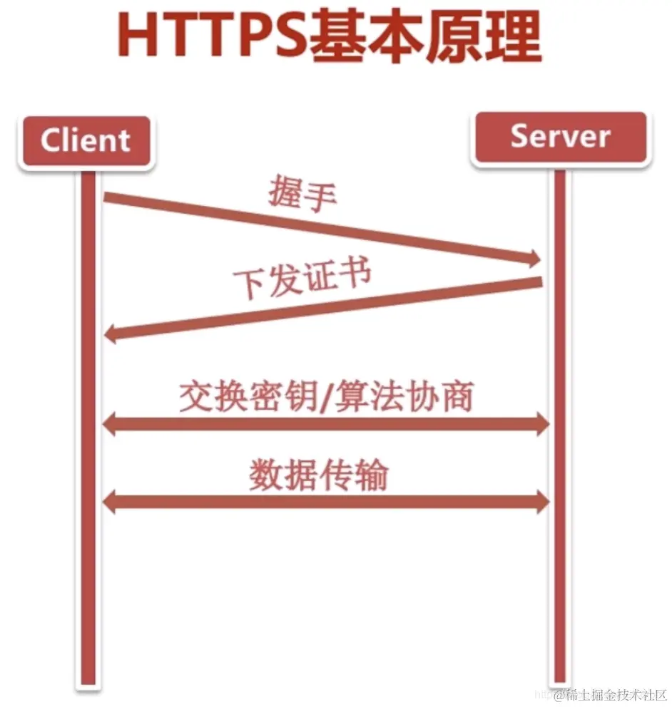 那客户端和服务端就要交换密钥和协商加密算法,对于客户端来说需要得到服务端的公钥,服务端需要有这个私钥,将这个客户端加密的内容进行解密,第三步完成之后,我们就可以进行数据的传输了。以上就是https的一个基本原理。我们只做一个基本了解就可以了。