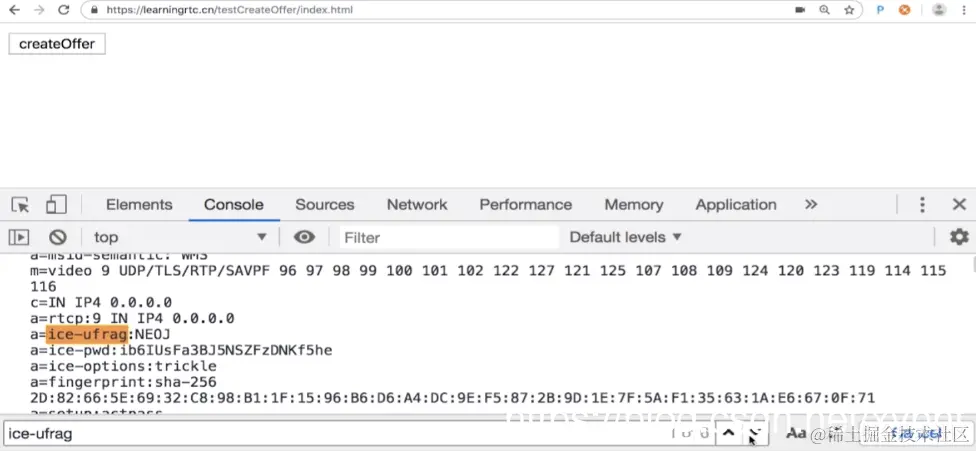 现在我们点击两次createOffer,我看下console,这时候我们搜offer就好了