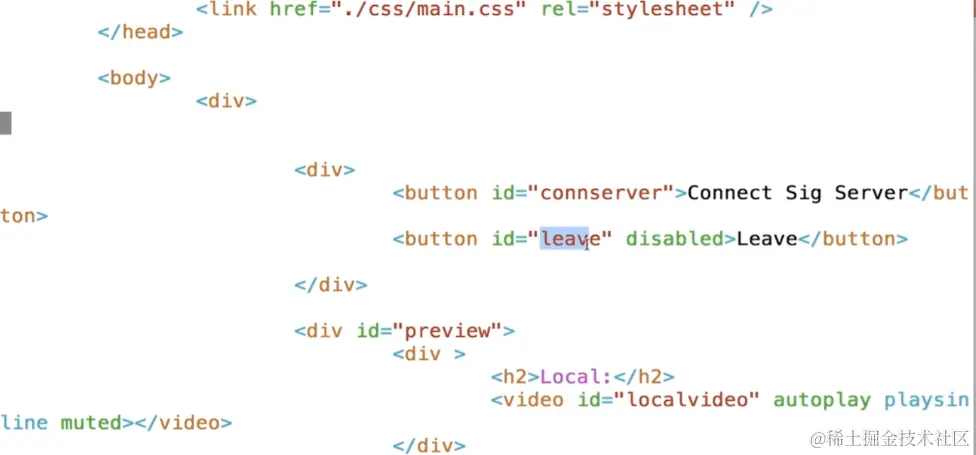 实际我们要为这两个button添加一些事件,当连接事件触发的时候会调用connSignalServer,当我们点击leave这个button的时候实际就会触发leave这个函数。
