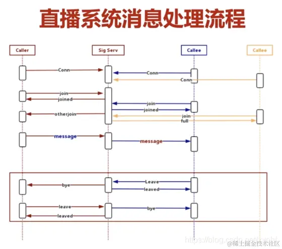 同样的道理如果是主叫方去发送这个leave,那这个信令服务器也是走同样的流程,先给另一方发送bye,然后回一下这个leaved,然后整个信令服务流程就是这样一个关系。