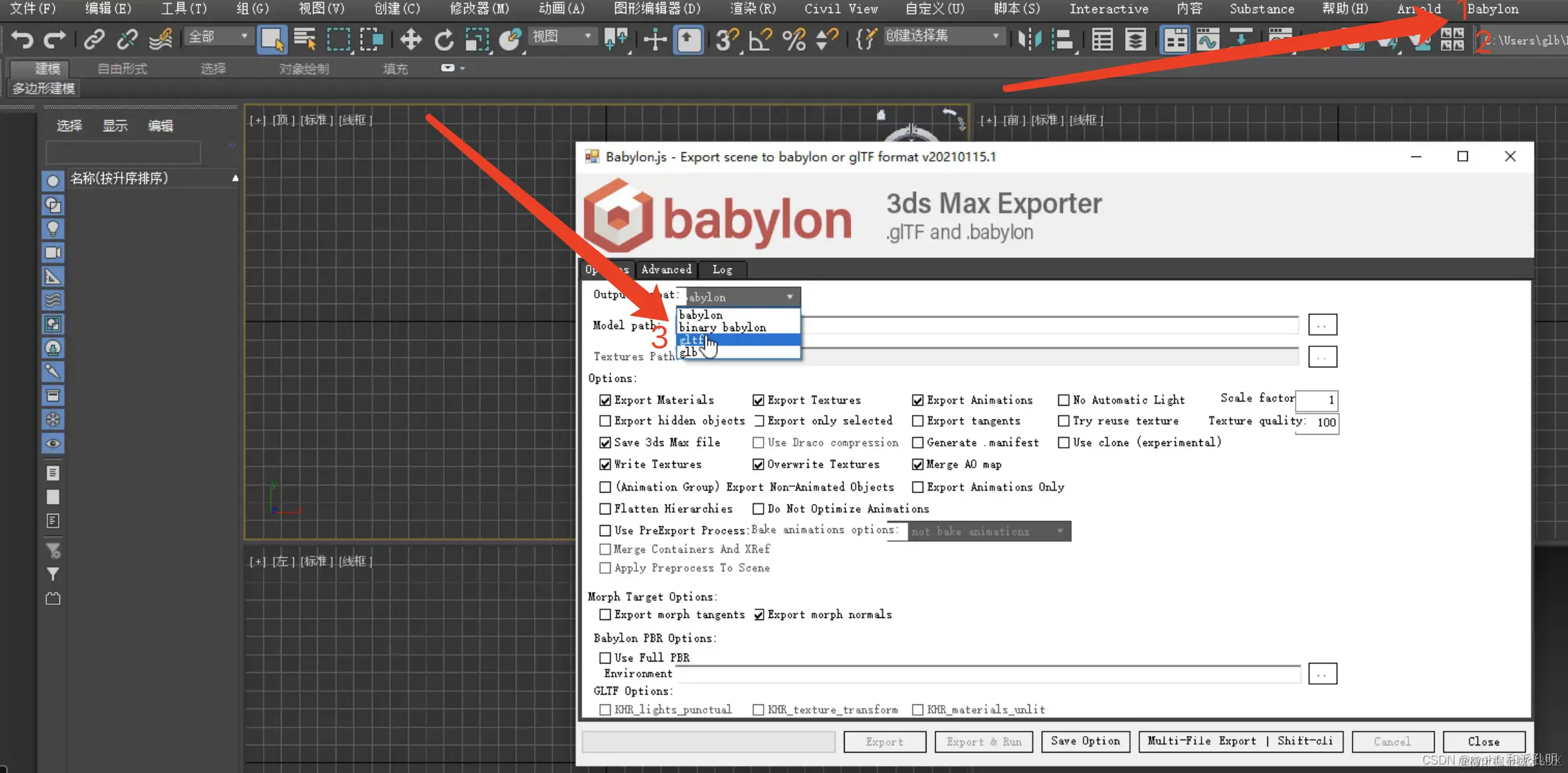 3d MAX 2018软件导出GLTF格式注意事项