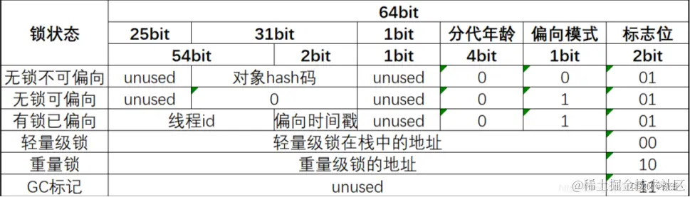 由于对象的hash码需要在Markword里面占用31个比特,所以如果需要存储对象的hash码的话,那锁的状态会处于无锁不可偏向