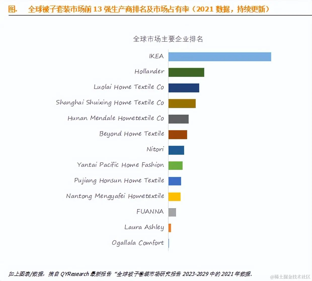 被子套装市场较为分散。 宜家等主要生产商的销售市场份额不到5%,许多生产商在本地市场的份额不到1%。