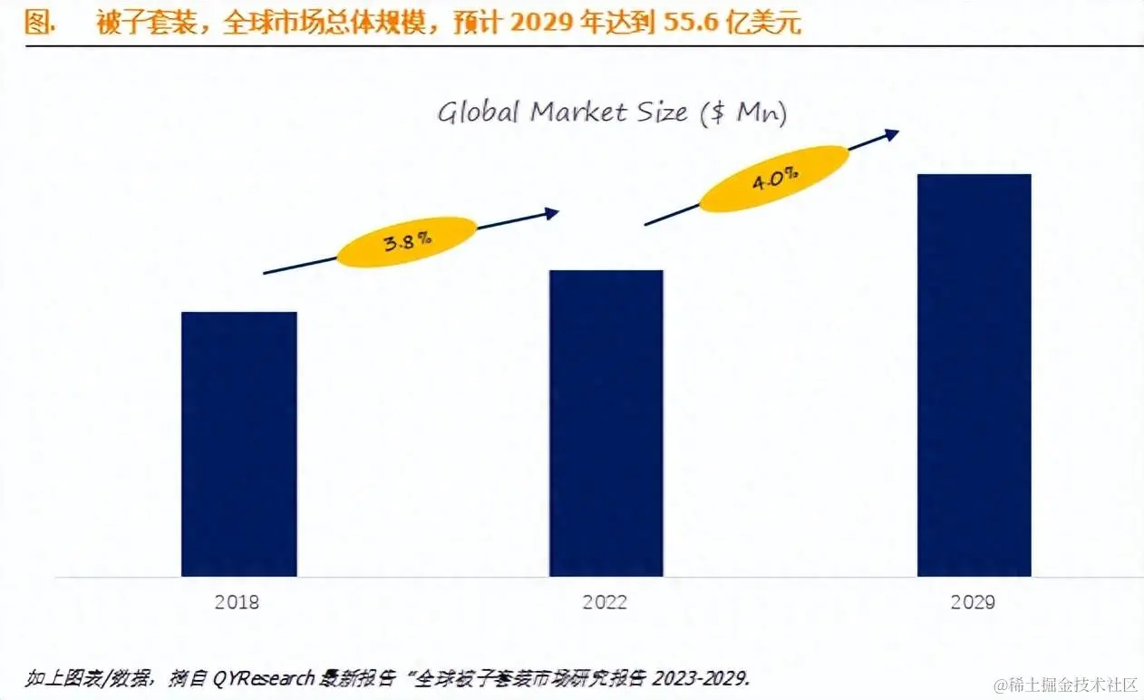 据QYResearch调研团队最新报告“全球被子套装市场报告2023-2029”显示,预计2029年全球被子套装市场规模将达到55.6亿美元,未来几年年复合增长率CAGR为4.0%。