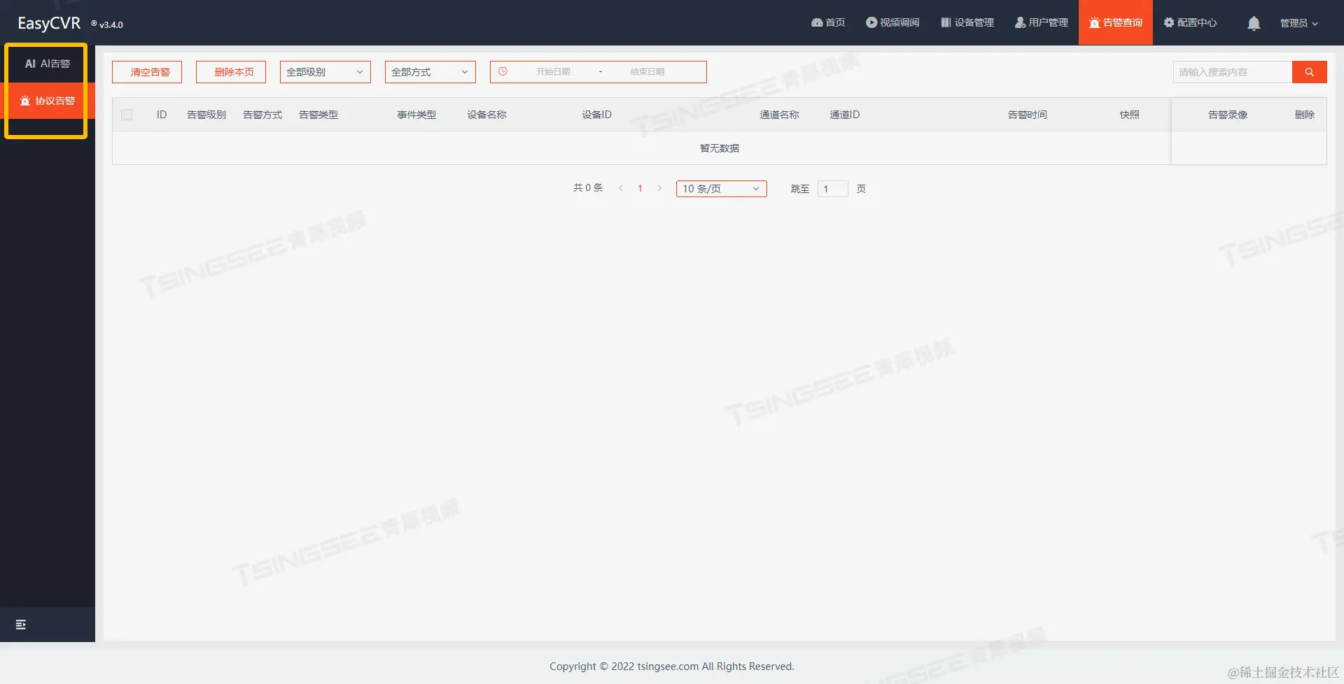 AI告警和国标GB28181告警均迁移至【告警查询】菜单,方便告警信息的统一查阅和管理。