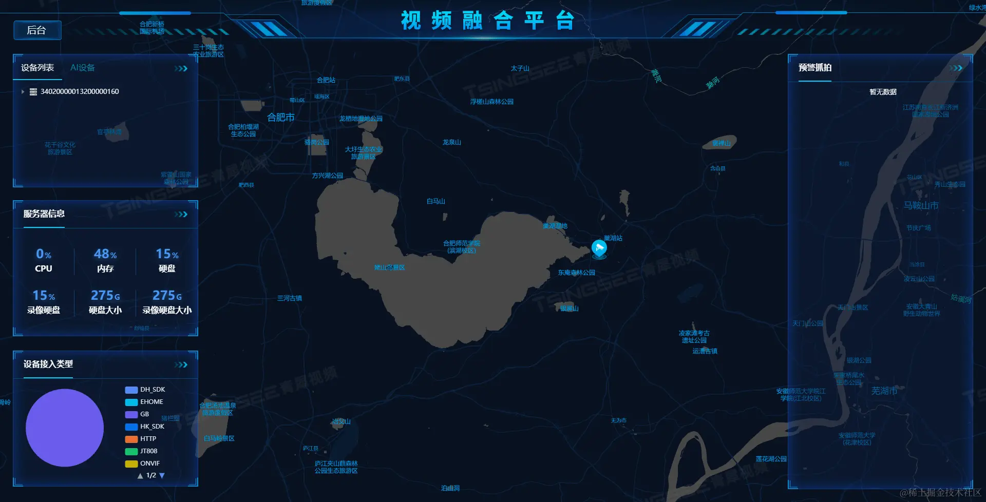 安防视频监控/视频集中存储/云存储/磁盘阵列EasyCVR平台可拓展性强、视频能力灵活、部署轻快,可支持的主流标准协议有国标GB28181、RTSP/Onvif、RTMP等,以及支持厂家私有协议与SDK接入,包括海康Ehome、海大宇等设备的SDK等。平台可拓展性强、视频能力灵活,能对外分发RTMP、RTSP、HTTP-FLV、WebSocket-FLV、HLS、WebRTC等视频流。