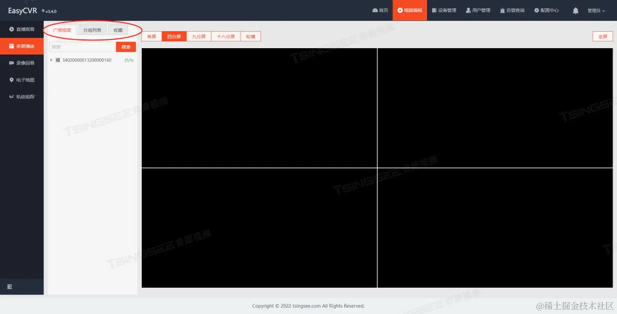 视频列表、分组列表和收藏列表固定在中部菜单栏,在切换“多屏播放”、“录像回放”、“电子地图”等功能时,不会重新加载设备列表导致已选择的设备或通道被重置。