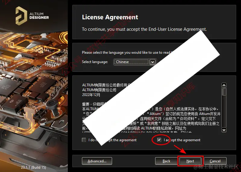 5.选择I accept the agreement,点击“Next”。