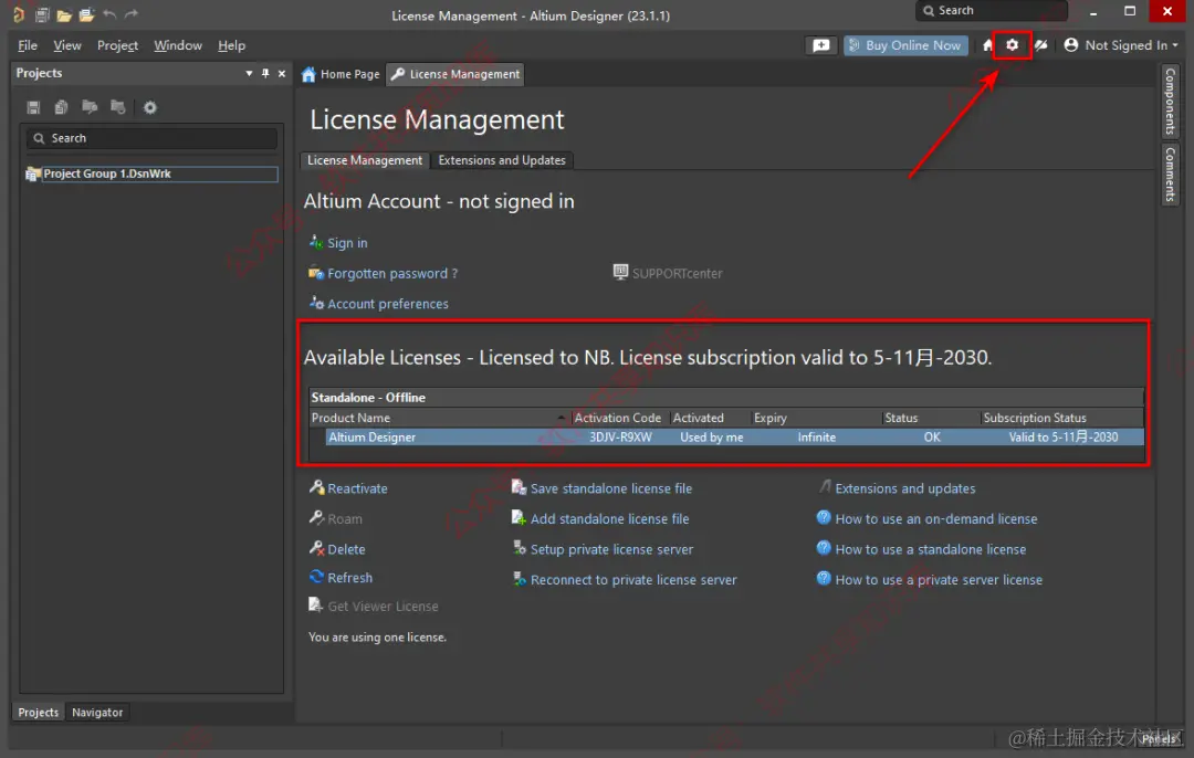 18.如下图所示说明激活成功,点击右上角的“设置图标”。