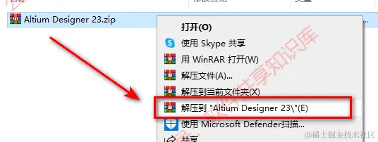 1.通过文章末尾处下载软件,鼠标右键【Altium Designer 23】压缩包,选择解压到Altium Designer 23。