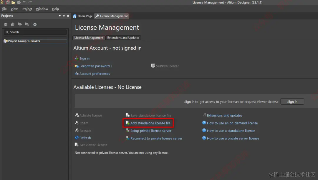 16.点击“Add standalone license file”。