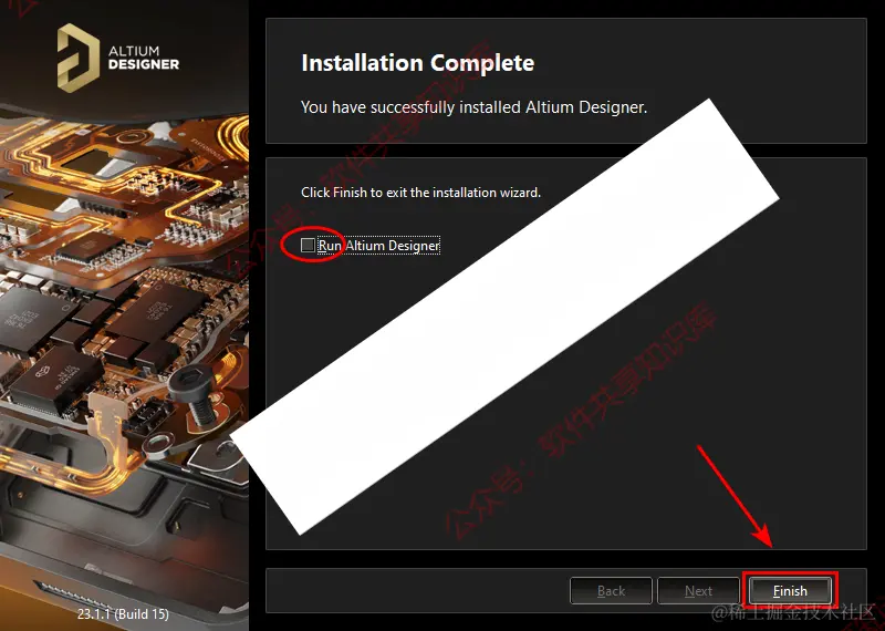 11.取消勾选Run Altium Designer,点击“Finish”。