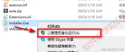 3.右键Installer,选择以管理员身份运行。