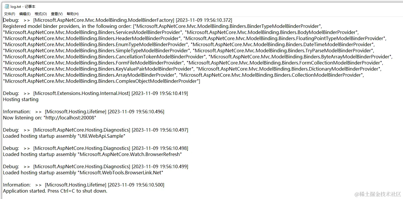 配置完成后,可以启动你的项目,查看日志文件 c:\log\log.txt.