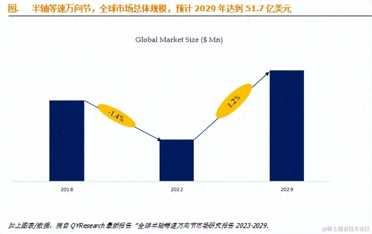 据QYResearch调研团队最新报告“全球半轴等速万向节市场报告2023-2029”显示,预计2029年全球半轴等速万向节市场规模将达到51.7亿美元,未来几年年复合增长率CAGR为1.2%。