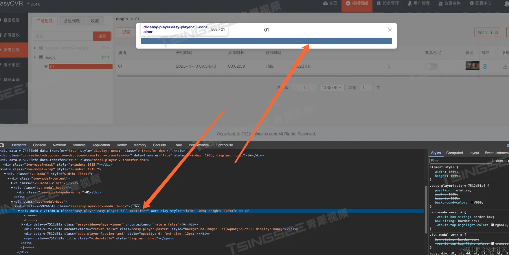 有用户在使用EasyCVR告警查询时,播放告警录像时出现播放器显示不全的情况。收到用户反馈后,技术人员立即开展解决,以下为排查与解决步骤:
