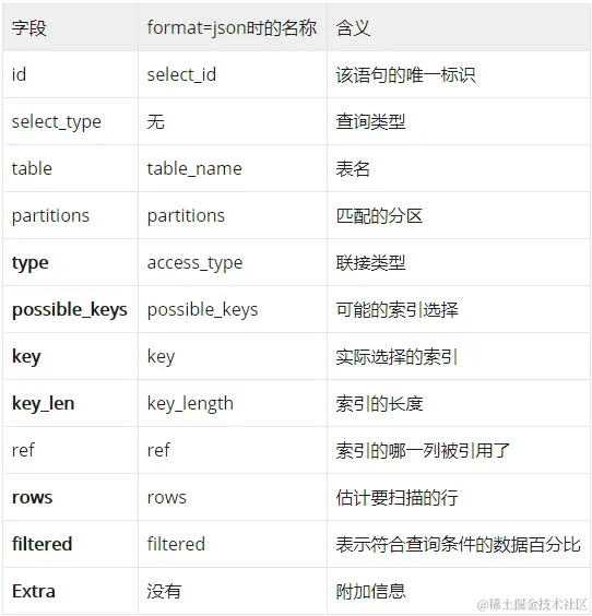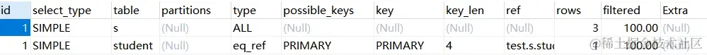 显示了在key列记录的索引中,表查找值所用到的列或常量,常见的有:const(常量),字段名(例:s.id)