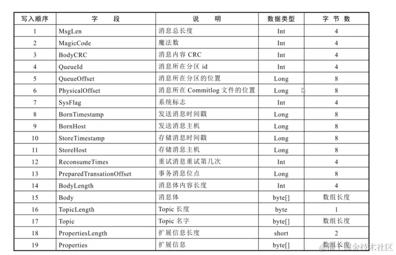 - ConsumeQueue 中存储的每条数据大小是固定的,总共 20 个字节,数据结构如下图
