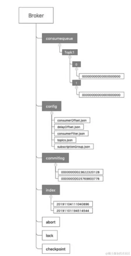 索引文件,提供了一种可以通过 key 或时间区间来查询消息,全部的文件都是按照消息 key 创建的 hash 索引,文件名是用创建时的时间戳命名。 - config