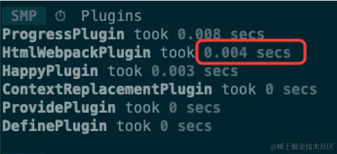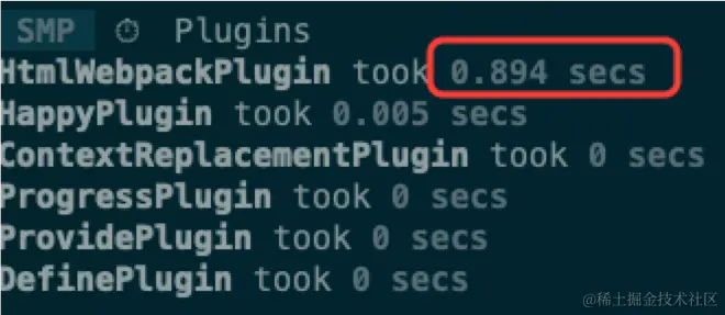 经过上面的优化 二次编译的时间有了较大的提升 。 但是通过观察分析,发现html-webpack-plugin耗时不太正常,因为html-webpack-plugin 的作用很简单,就是:使用 webpack打包时创建一个 html 文件,并把 webpack 打包后的静态文件自动插入到这个 html 文件当中。 我们已经从全量的8个页面改为增量单个html启动了耗时不应该那么久。