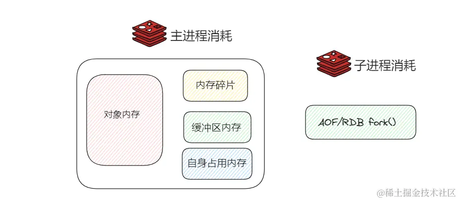 子进程消耗是指在RDB、AOF重写时fork()子进程的内存消耗
