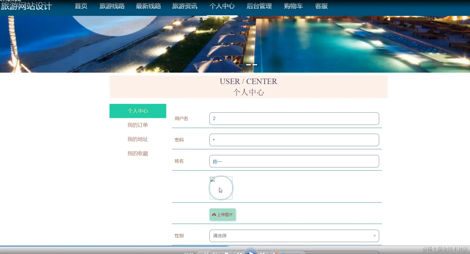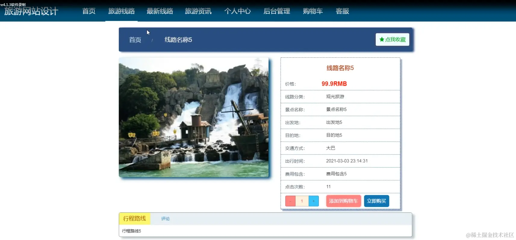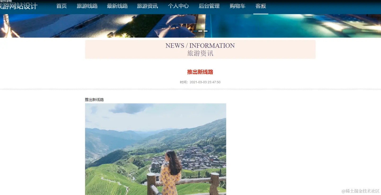 用户登录成功后,可以进行查看旅游路线、最新线路、旅游资讯、个人中心、后台管理、购物车、客服等功能模块。进行相对应操作。如图5-6所示。