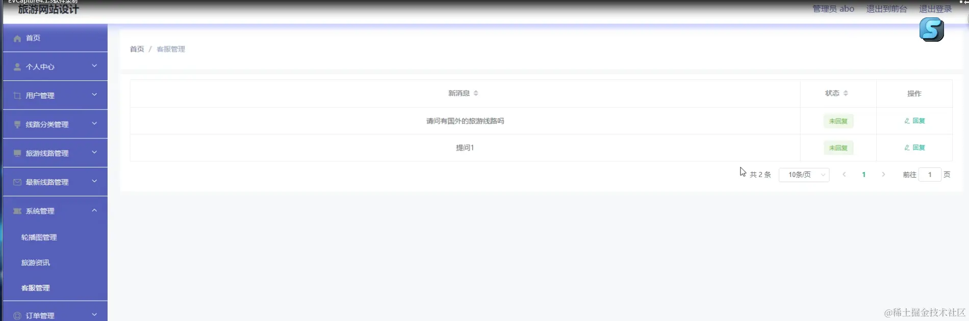 客服管理:管理员通过列表可以进行查看新消息或状态等信息,进行查看或回复操作,如图5-5所示。