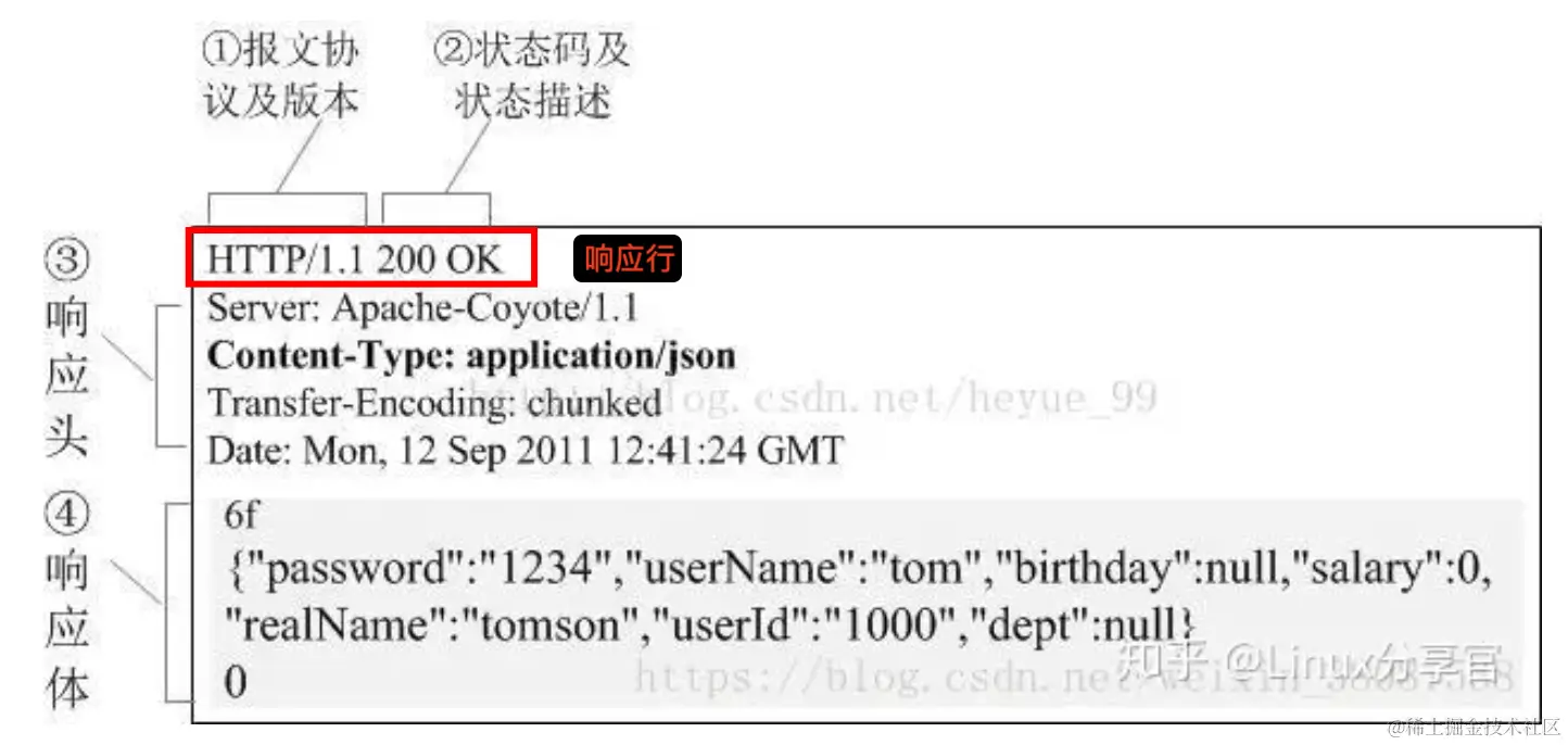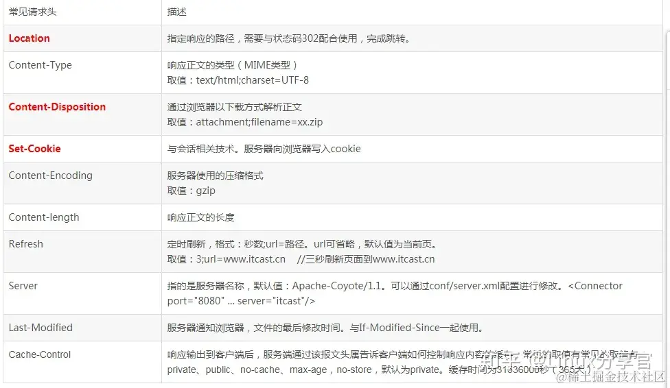 - 响应行包含:HTTP协议与版本、状态码与描述