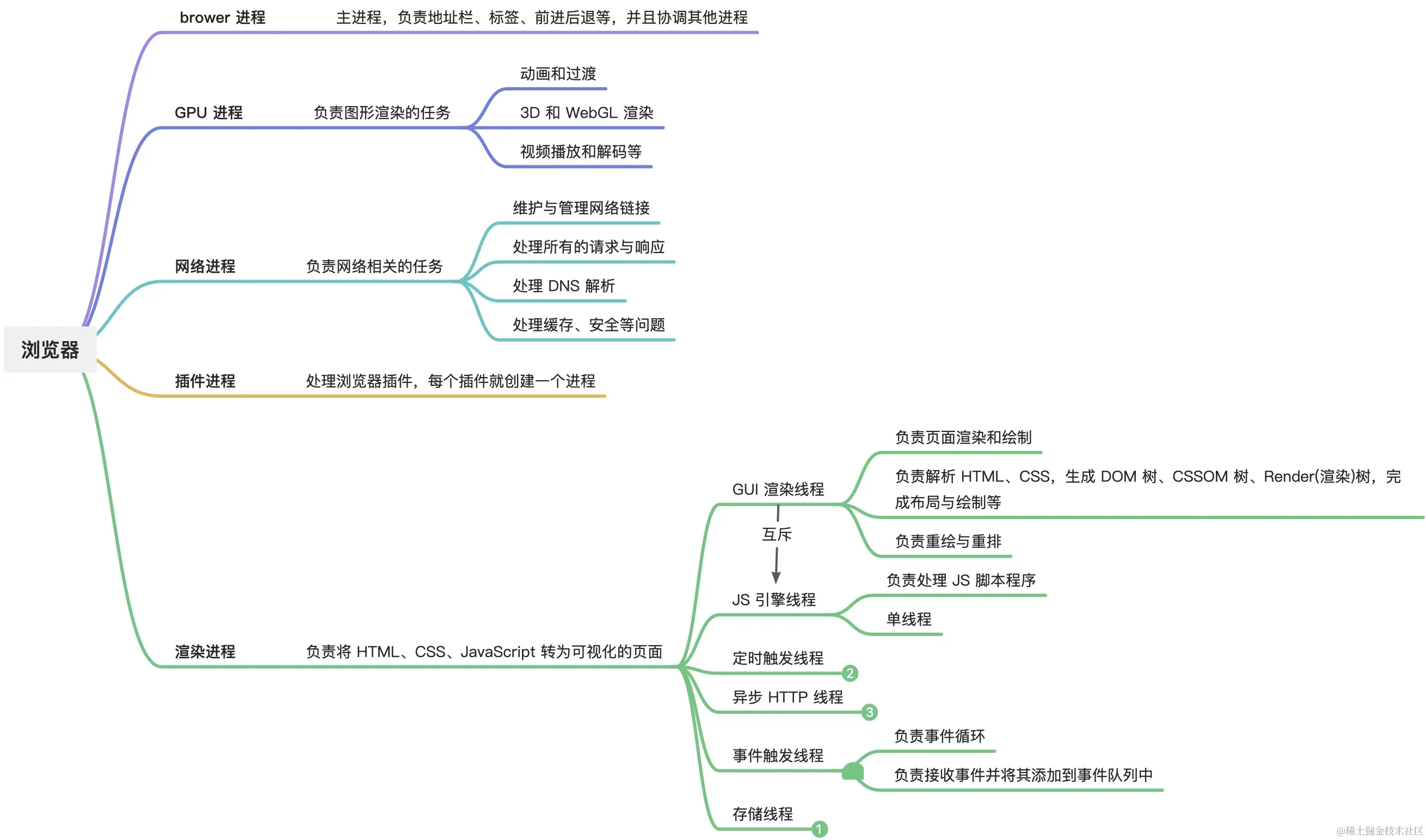 浏览器的渲染进程专门来负责将HTML、CSS、JavaScript 转为可视化的页面。