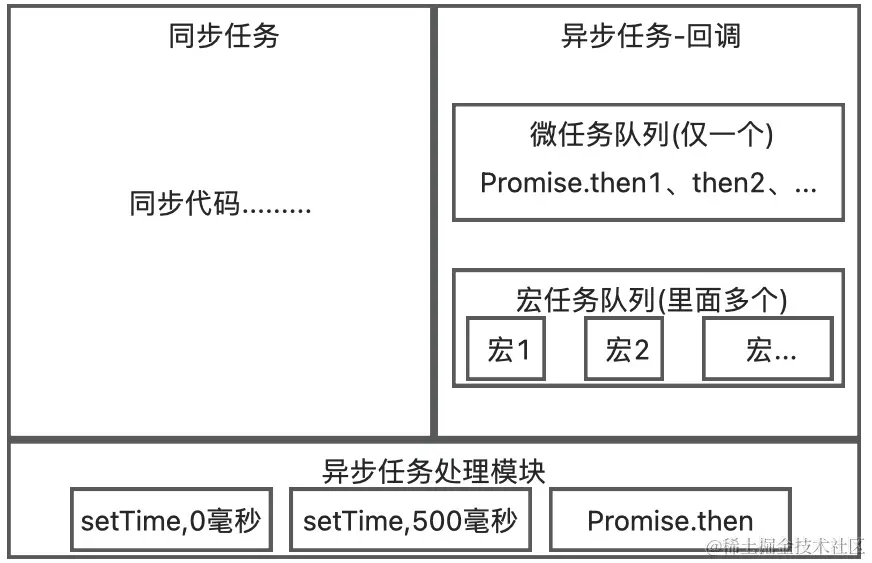 所以整个 JS 运行是由:[同步任务、异步任务(微任务、宏任务)] 不停的循环直到执行完毕