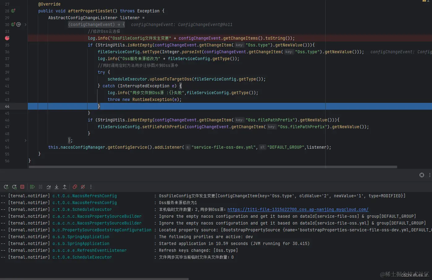 核心部分在于我们注册一个Nacos配置监听器,监听云端Nacos是否修改本地OSS源配置,如果修改则修改本地,如下