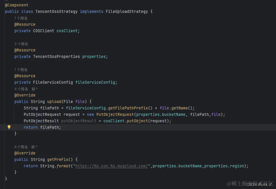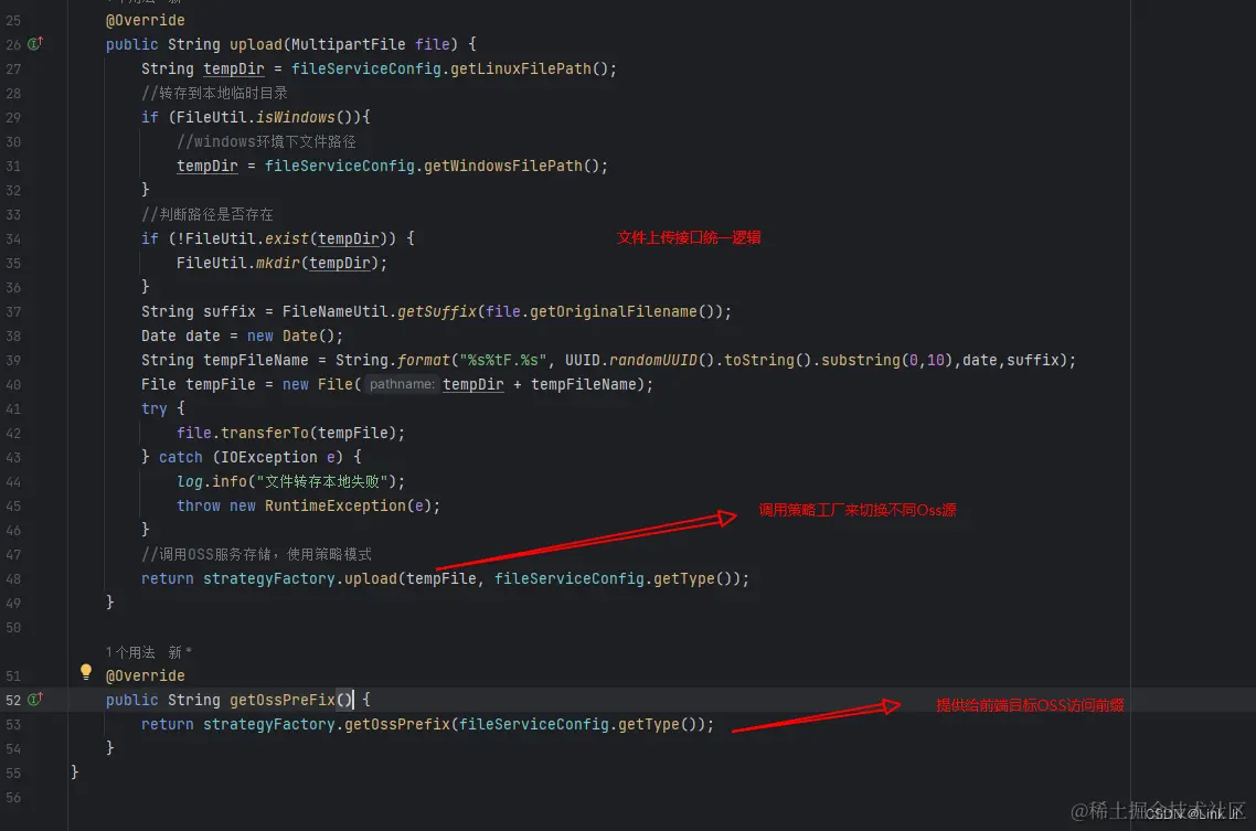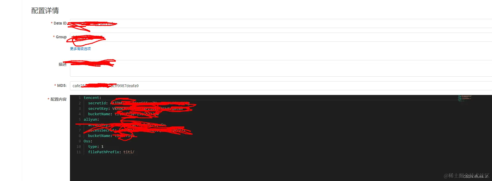 Nacos配置监听器代码如下,我们在云端修改配置文件后,本地同步刷新Oss策略来源,并且将系统中的临时文件同步到目标源Oss服务器上,保证文件路径相同,前端只需要调用回调接口来获取当前Oss前缀即可正确访问。