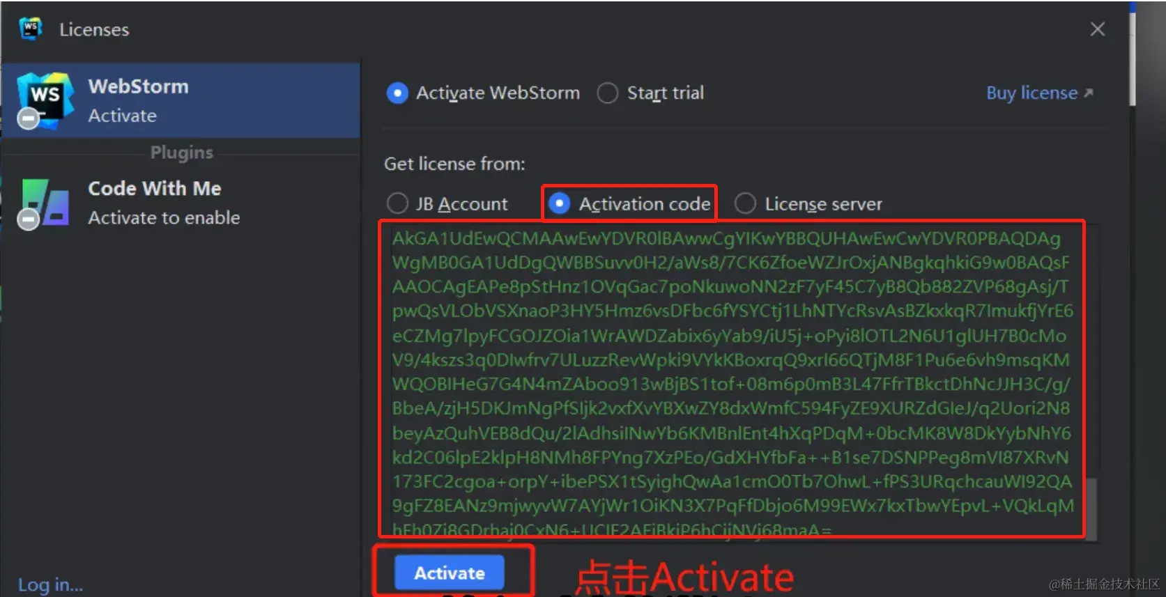 输入授权码即可。
