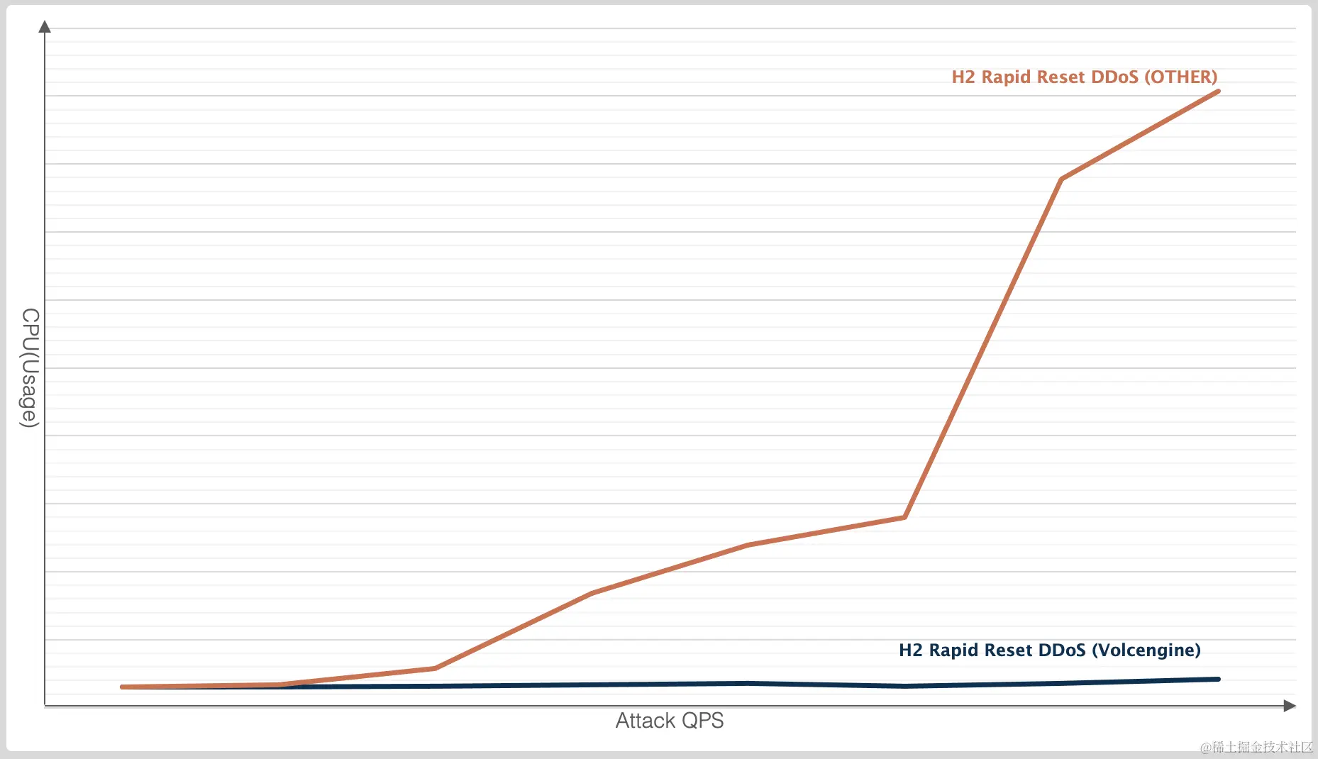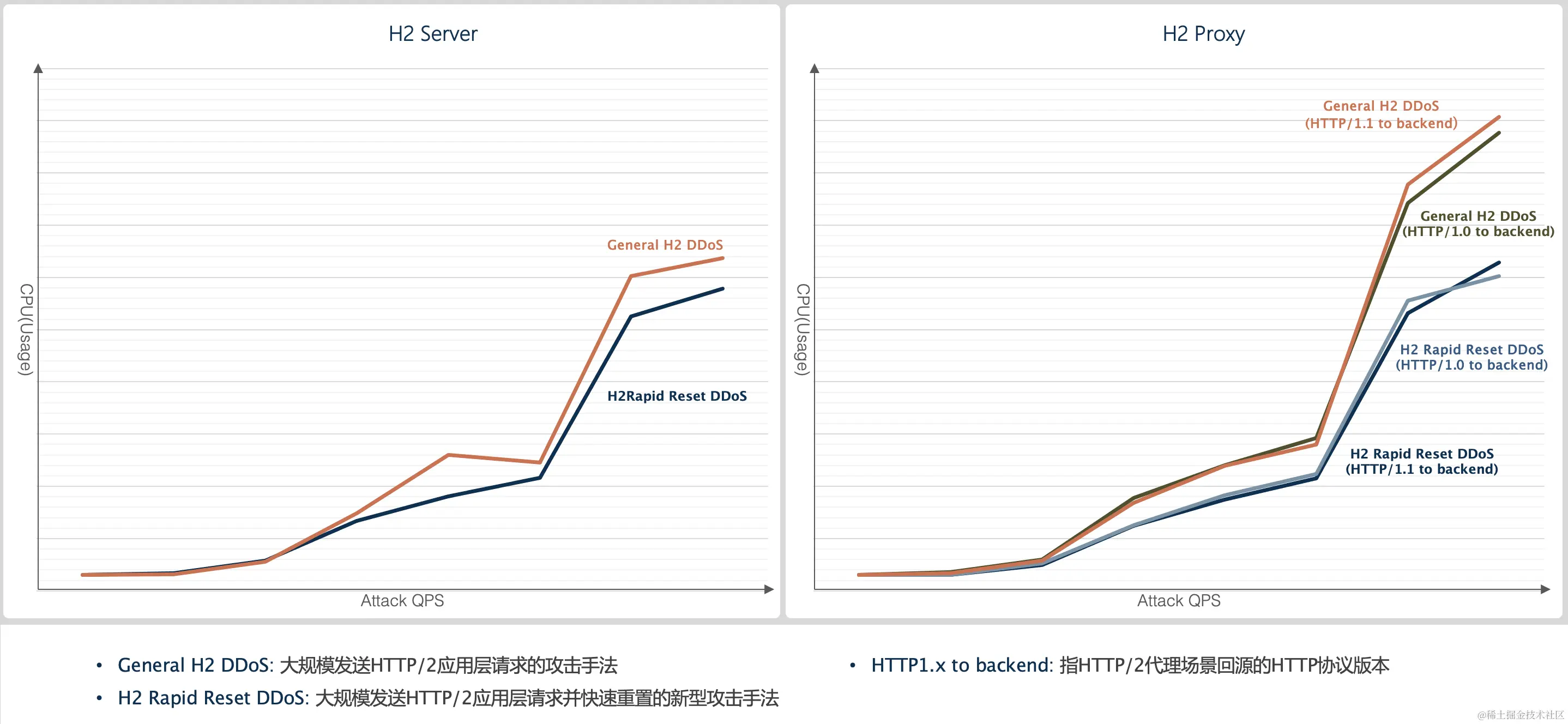 【关键点二】 H2 Rapid Reset DDoS对服务端CPU的压力实际略小于一般的应用层DDoS,但仍具有一定威力