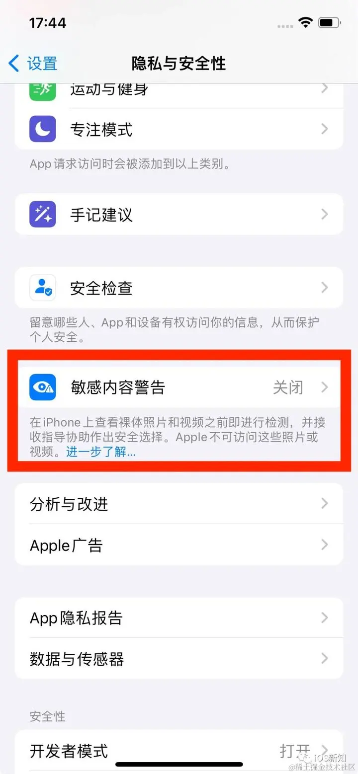 苹果手机有个功能是针对敏感内容进行警告的,可以在 设置 -> 隐私与安全 -> 敏感内容警告 打开,开启这个功能后,手机会对 隔空投送、联系人、信息、视频信息等应用中监控是否有敏感内容。