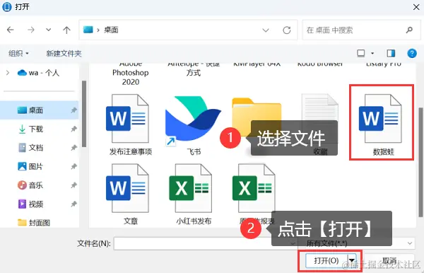 步骤2:在弹出的窗口中选择文件,然后单击**【打开】**按钮就可以发送文件了。