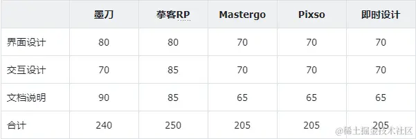 通过这一部分的测评,5款工具的综合表现比较相近,而摹客RP占有一些优势。我们先来为这5款产品打个分: